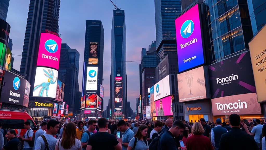 By using Toncoin within Telegram, you can turn your chats into a secure and convenient financial ecosystem. This integration simplifies managing digital assets directly from your messaging app, making transactions easy and private. It encourages mass adoption by lowering barriers, so more people can participate in crypto without external exchanges or wallets. If you keep exploring, you’ll discover how this innovative approach is driving digital finance into everyday communication.
