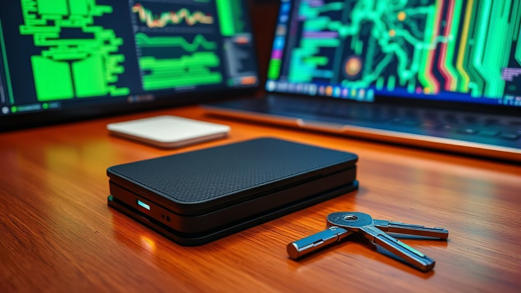 Are you confident your Bitcoin is secure? If you’re serious about protecting your digital assets, understanding the different ways to store your coins is essential. One of the most effective methods involves using multi signature wallets. Unlike traditional wallets that rely on a single private key, multi signature wallets require multiple signatures to authorize a transaction. This layered approach markedly enhances security because even if one key gets compromised, your funds remain safe. For example, you might set up a wallet that requires three out of five keys to approve any transfer. This setup makes it incredibly difficult for hackers to access your Bitcoin, as they’d need to compromise multiple private keys, which are typically stored in different secure locations. Studies indicate that combining multi signature wallets with hardware wallet backups significantly reduces the risk of theft or loss. But even with multi signature wallets, you shouldn’t rely solely on digital security. Hardware wallet backups are indispensable to guarantee your coins stay safe if your primary device encounters issues or gets lost. Hardware wallets are physical devices that store your private keys offline, shielding them from online threats like hacking or malware. Creating backups of these devices means you can recover your funds if the hardware fails or is damaged. It’s essential to keep these backups in a secure, separate location—think safety deposit boxes or other protected spaces—so you can access your Bitcoin even in emergency situations. When setting up hardware wallet backups, be meticulous about the process, confirming your backup phrase or seed words are written down carefully and stored securely. Never store these backup phrases digitally or online, as that could expose them to potential breaches. Regularly review your security setup, including your secure storage options, to ensure your assets remain protected. Combining multi signature wallets with robust hardware wallet backups offers a layered defense that markedly reduces your risk of losing Bitcoin due to theft, hardware failure, or accidental loss. You’re creating a system where no single point of failure exists, making it much harder for malicious actors to compromise your holdings. Remember, security isn’t just about possessing the right tools; it’s also about implementing best practices consistently. Regularly reviewing your security setup, updating your backup procedures, and staying informed about new threats will keep your Bitcoin protected. In the end, taking these steps empowers you with peace of mind, knowing your coins are safeguarded by multiple defenses designed to withstand various risks. Your Bitcoin’s security depends on your proactive choices—so invest in multi signature wallets and hardware wallet backups, and stay vigilant.