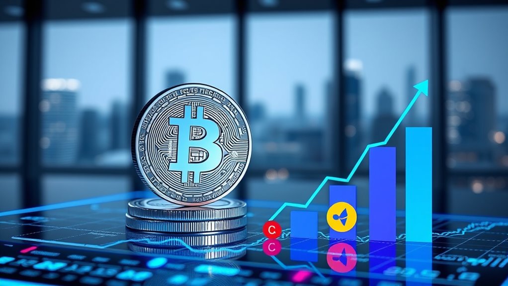 Technological developments influence your risk-return profile by enhancing blockchain scalability and token standardization, which can lower risks and boost returns. When blockchain scalability improves, transactions become faster and cheaper, reducing network congestion. Token standardization, like ERC-20, simplifies integration and increases liquidity, making investments more attractive. These advancements make your investments more secure and potentially more profitable, but they also introduce new vulnerabilities if not properly managed, so stay informed.