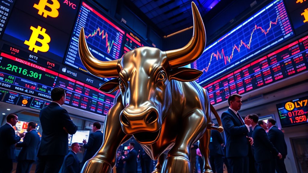 Understanding Bitcoin’s market dynamics involves recognizing the ongoing battle between bulls, who buy aggressively in hope of higher gains, and sellers, who seek quick profits or wish to limit losses. Market sentiment shifts based on emotions, social media buzz, and news reports, influencing price swings. Traders often adjust their strategies according to whether optimism or fear dominates. To succeed, you need to grasp these forces at play—continue exploring, and you’ll uncover how to navigate this volatile environment effectively.