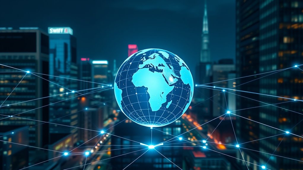Imagine your cross-border payments flowing smoothly like a well-oiled machine, with the blockchain ledger acting as a sturdy bridge connecting distant shores. SWIFT’s new technology promises faster, more secure transfers that cut through the chaos of traditional banking. As you watch your transactions glide seamlessly across borders, you’ll see a future where financial barriers crumble, and global commerce becomes as effortless as crossing a single, clear stream. The horizon of borderless payments is now within reach.