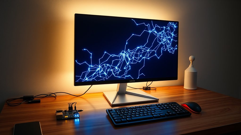 To run a Bitcoin Lightning node, you start by choosing and installing compatible software like LND, c-lightning, or Eclair on a dedicated device such as a Raspberry Pi. Next, connect your node to the Bitcoin network by synchronizing with the blockchain and creating your wallet. You’ll then open payment channels with other nodes, secure your private keys, and guarantee your hardware and internet are stable. Keep learning to master secure setup and management of your Lightning node.