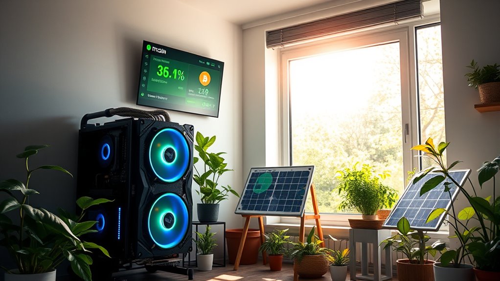 Think of your home as a small but mighty garden, where your renewable energy fuels your Bitcoin mining like a steady, nurturing stream. With each watt you harness, you’re planting seeds for a greener future—one that grows stronger and more sustainable every day. By mining responsibly, you’re not just chasing digital gold, but helping to heal the Earth. Keep tending your garden, and watch your eco-friendly efforts blossom into a brighter, greener tomorrow.