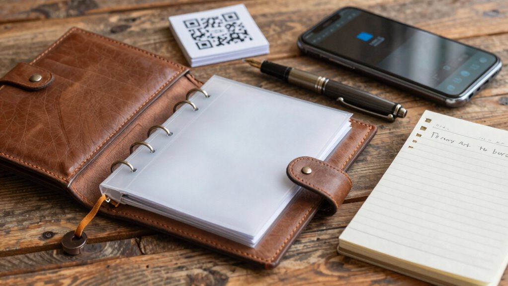 You might think digital backups are enough, but physical storage options like hardware wallets and paper storage are essential. Hardware wallets keep your private keys offline, protecting against hacks, while paper storage offers a low-tech, durable backup—just guarantee it’s stored securely, away from moisture or fire. Combining both methods gives you a reliable, layered defense, ensuring your crypto remains safe even if digital devices fail.