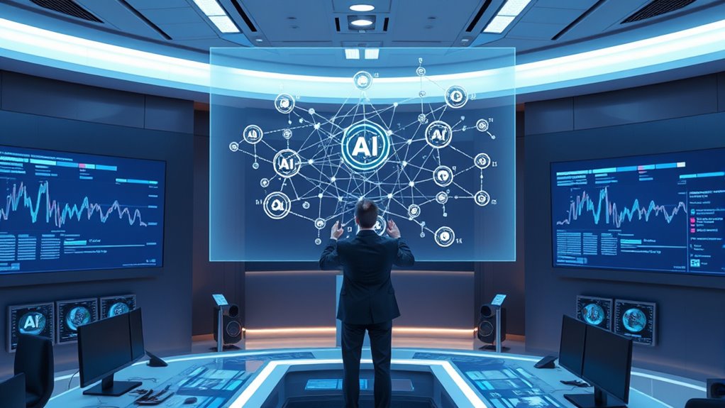 AI guarantees real-time compliance updates through continuous transaction monitoring, instantly analyzing each transfer for potential risks. It automates compliance processes, flagging suspicious activities and updating regulations automatically. This allows you to respond quickly to new rules and threats, maintaining compliance without delays. By automating these tasks, AI keeps your system up-to-date effortlessly, reducing manual effort and minimizing errors in your compliance efforts.
