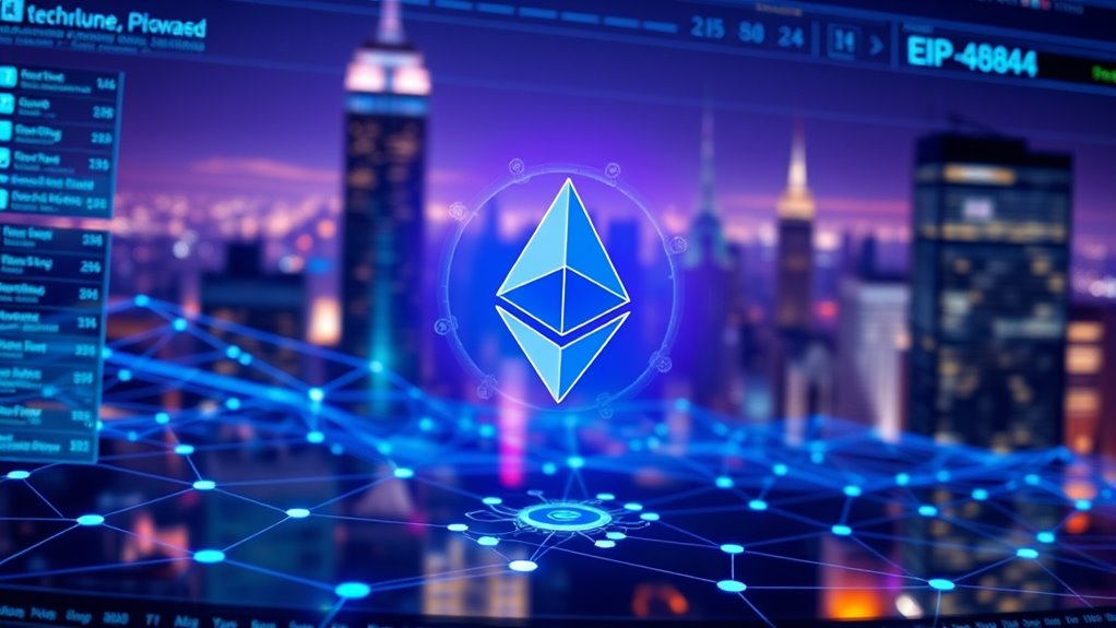 EIP-4844 differs from previous Ethereum upgrades because it introduces proto-danksharding, which enhances layer 2 scalability and considerably reduces gas fees. Unlike earlier updates focused on security and consensus improvements, this upgrade targets transaction efficiency and data availability. You’ll notice faster, cheaper transactions on layer 2 solutions, making Ethereum more user-friendly and scalable. This upgrade marks an essential step toward broader adoption and improved performance across the network.