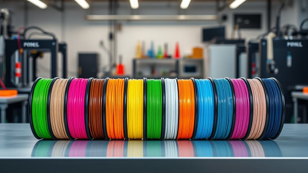 If you’re looking for the best 3D printing filaments of 2025, I’ve got you covered. I’ve reviewed top options like Rainbow PLA+, silk, metallic, and impact-resistant PETG, all compatible with popular printers. Whether you’re into detailed art, durable prototypes, or colorful design, there’s something for everyone. These selections combine quality, vibrant finishes, and reliability. Keep exploring, and you’ll find all the details to elevate your 3D projects to new heights.