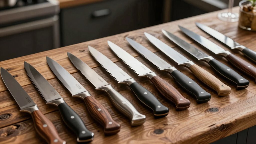 Think of a bread knife’s durability like a trusted friend’s loyalty. Stainless steel blades are my go-to because they resist rust and maintain sharpness over time. High-carbon steel is another excellent choice, offering strength but needing more maintenance. I once used a ceramic knife that stayed sharp longer but was fragile—I learned the hard way that durability depends on both material and care.