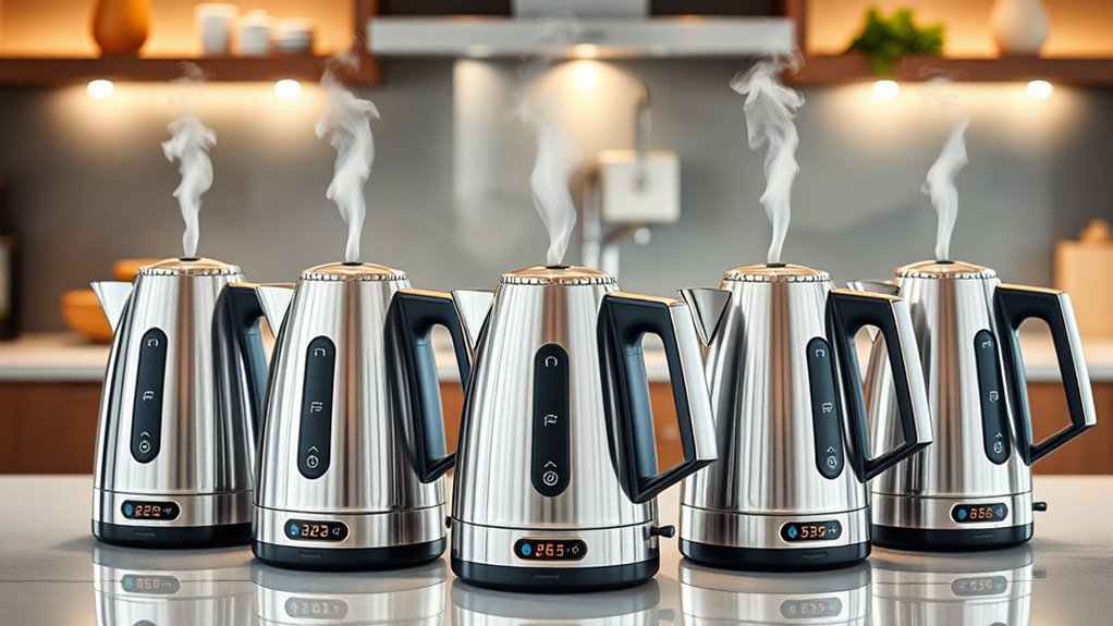 Choosing the right electric kettle with temperature control is like finding the perfect song to match your mood—once you get it, everything just flows smoothly. Whether you prefer precise settings or sleek touch screens, these top picks can elevate your brewing game. Think of them as your trusty musical instruments, turning everyday water boiling into a symphony of perfectly brewed drinks. Here’s to making every cup a masterpiece!