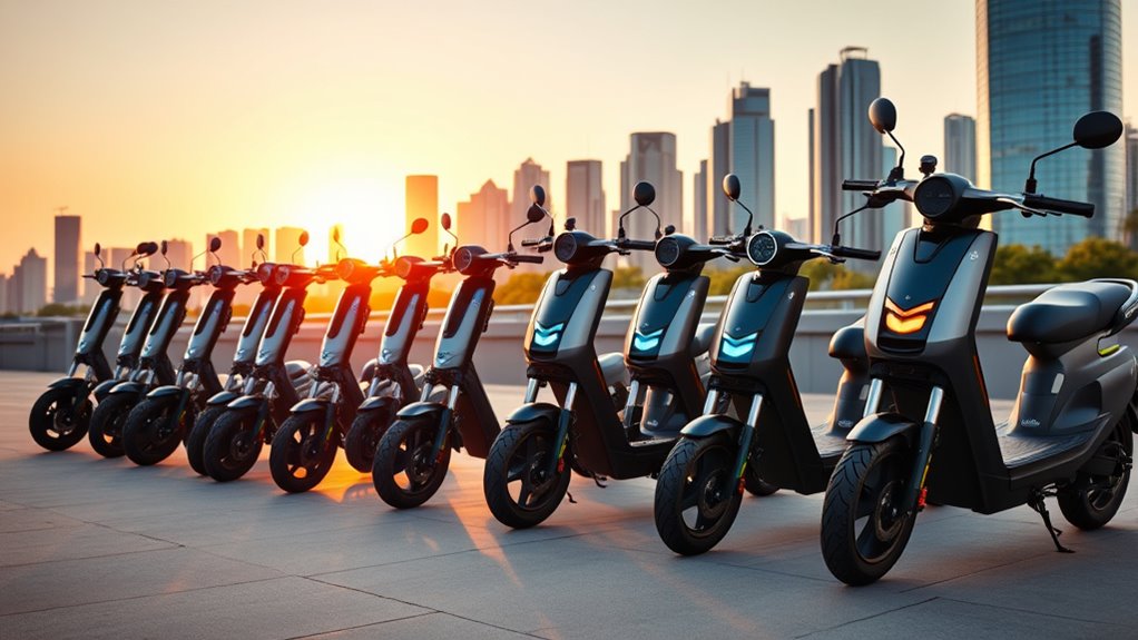 If you’re looking for the best electric scooters of 2025, I’ve got you covered with options that combine speed, fun, and eco-friendliness. From lightweight models with 8.5-inch tires to powerful scooters featuring 2000W motors and long-range batteries, there’s something for everyone. Whether you want a quick city commutes or an outdoor adventure, these rides are designed for safety and convenience. Keep exploring—there’s more to discover to find your perfect ride.