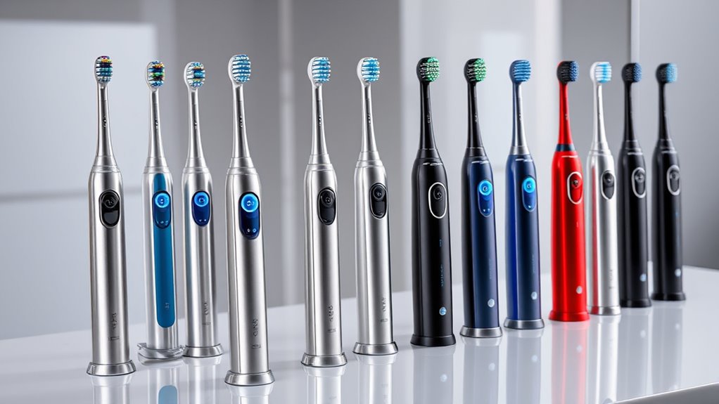 If you’re looking to upgrade your oral care in 2025, I recommend checking out the top electric toothbrushes that combine advanced technology with sleek design. From models with up to 62,000 brush strokes per minute to those offering personalized modes and app integration, there’s something for everyone. These leading picks deliver more effective plaque removal, better gum health, and long battery life. Stay tuned to discover the best options that can truly transform your brushing routine.
