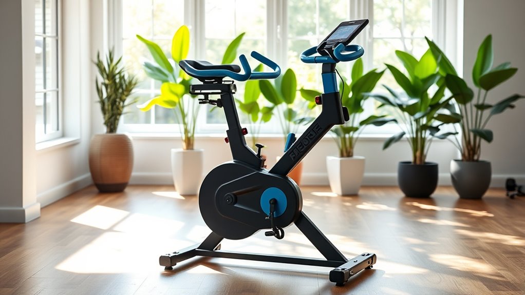 Finding the right exercise bike often comes down to balancing your budget with the features that deliver real value. Start by setting a clear price range to identify options that are affordable yet offer essential features and durability. Compare models by evaluating their resistance levels, digital monitors, and adjustability relative to their cost to determine the best value. Consider if the build quality and included accessories justify paying more, especially for long-term use. Additionally, look for bikes with reliable warranties and good customer support to protect your investment. Ultimately, it’s about matching your financial capacity with your fitness goals, ensuring you get the most benefit without overspending. A well-chosen bike offers excellent return on investment and keeps you motivated.