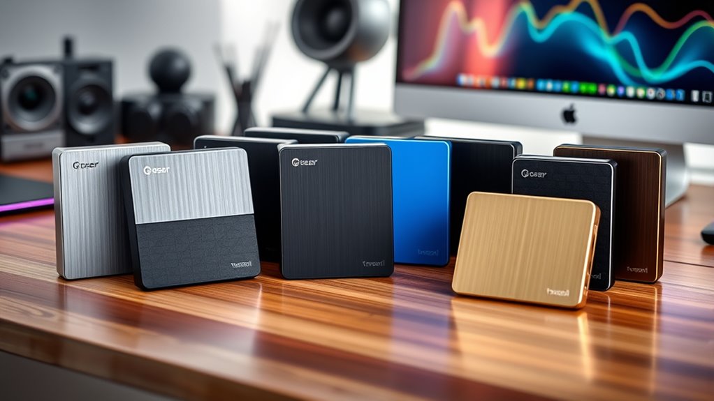 If you’re looking to boost your storage in 2025, I recommend checking out the top external hard drives like the Seagate 2TB Portable HDD, Samsung T7 SSD, WD’s 6TB and 5TB models, and rugged options like LaCie Rugged USB-C. These drives offer a range of capacities, speeds, and durability features perfect for backups, media libraries, or on-the-go use. Keep exploring, and you’ll find the ideal drive to meet your needs.