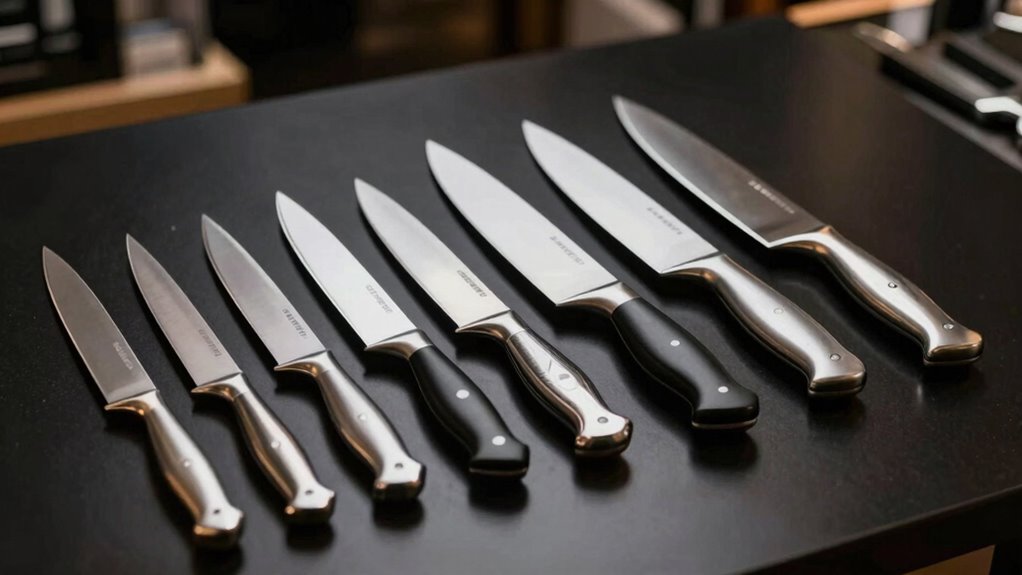 A razor-sharp edge is vital for making clean, effortless cuts, and a blade’s ability to stay sharp depends on its material and maintenance. High-quality knives often feature a fine edge angle, usually between 14° and 20°, balancing sharpness and durability. Narrower angles make the blade sharper but require more frequent honing. Knives made from high-carbon stainless steel tend to keep their edge longer thanks to their hardness and resistance to dulling. Regular honing and sharpening are essential; even the sharpest knife will underperform if it’s dull. While features like grantons or hollow edges reduce food sticking, they don’t affect sharpness. Ultimately, choosing a knife with a durable, well-maintained edge ensures effortless slicing and better performance in the kitchen.
