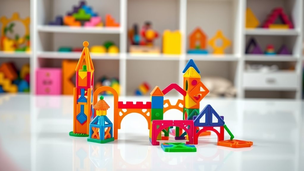 When choosing the best magnetic tiles for kids in 2025, I look at sets like Magna-Tiles and Connetix, comparing their sizes, designs, and educational features. Magna-Tiles offers a variety of sets, from small introductory packs to large, elaborate ones, while Connetix is known for sturdiness and unique shapes. If you want to discover which set suits different ages, skills, and budgets, keep going for more details and insights.