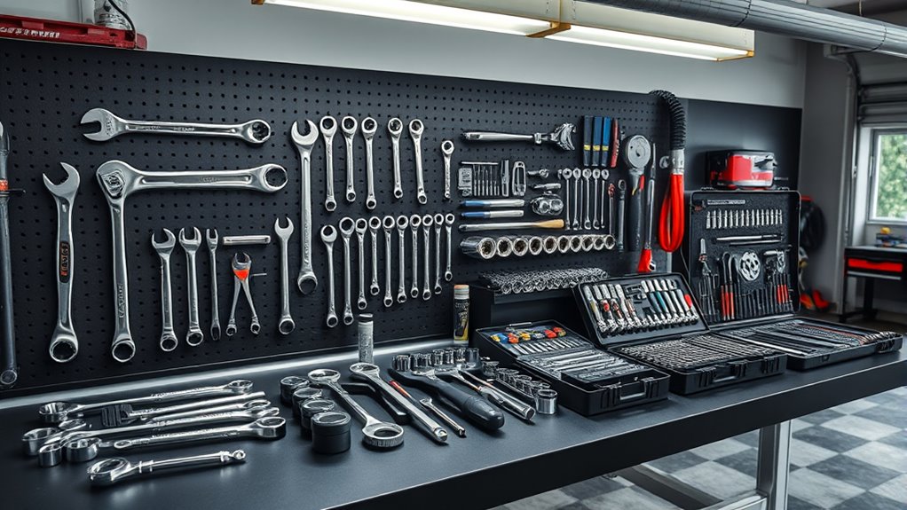 If you’re upgrading your garage in 2025, I recommend checking out the top mechanics tool sets I’ve found. These sets, made from durable chrome vanadium steel, range from 105 to over 300 pieces, including sockets, wrenches, and accessories perfect for DIY or professional use. Clear organization, impact-rated options, and versatile sizes make them suitable for all tasks. Keep exploring, and you’ll discover which set best matches your needs and budget.