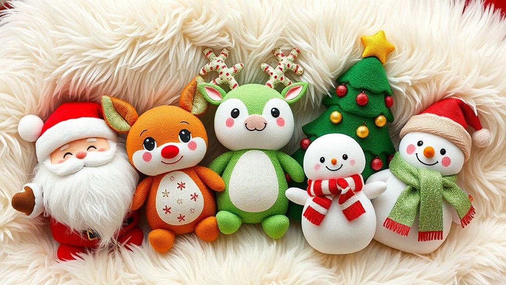 If you’re looking for the best Squishmallows holiday collectibles for 2025, I recommend checking out adorable options like Emmy the Christmas Elf, the Grinch plush, Mead the Apple Cider Latte, Darla the Christmas Deer, and Richie the Christmas Axolotl. These limited editions and seasonal designs are perfect for cuddling or decorating. They’re made from soft, durable materials and range in size to suit different ages. Keep exploring to discover even more festive favorites to add to your collection.