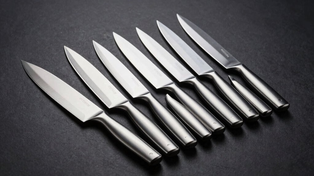 Back in the days of medieval kitchens, steel was king, and today, certain types still shine for pros. I’d say VG-10, SG2, and CPM-S35VN are top picks because they combine durability, edge retention, and corrosion resistance. Chefs like me favor these steels because they handle daily use without losing sharpness. If you’re serious about your craft, investing in knives with these steels guarantees you’re equipped for any culinary challenge.