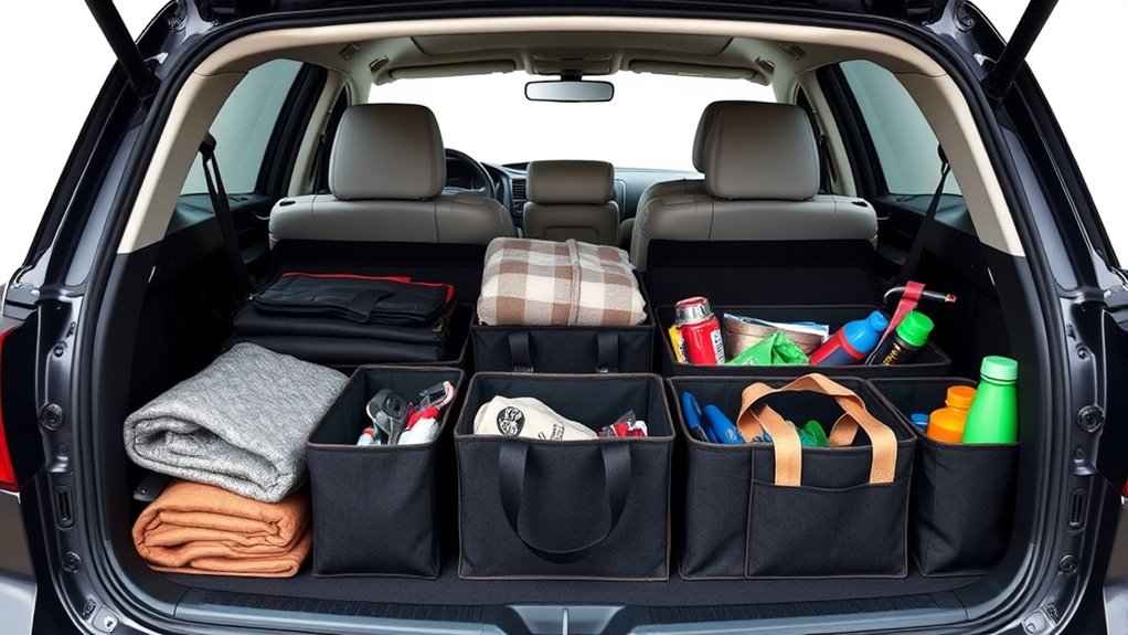 The key to an effective trunk organizer lies in its ability to keep items neatly separated and easily accessible. Look for models with multiple compartments, pockets, or dividers to categorize your belongings efficiently. Adjustable or removable dividers allow you to customize the space to fit different items and vehicle sizes. Features like mesh pockets, exterior compartments, and lid storage help organize small or frequently used items for quick retrieval. Secure closures, Velcro straps, or non-slip bases are essential to prevent shifting during transit, maintaining order. A well-designed organizer balances capacity with ease of access, ensuring your trunk remains tidy without creating clutter. These organization features make it simple to find what you need instantly and keep everything in its rightful place.