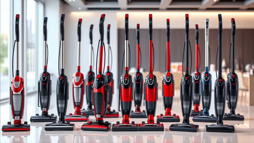 If you’re looking for the 15 best upright vacuums of 2025, I’ve found models that excel in power, versatility, and ease of use. These include lightweight options, those with advanced brushroll tech, strong suction, and HEPA filters for allergies. Many feature swivel steering, multiple attachments, and quick maintenance. To find the perfect fit for your home, keep exploring—this guide will show you all the details you need to make an informed choice.