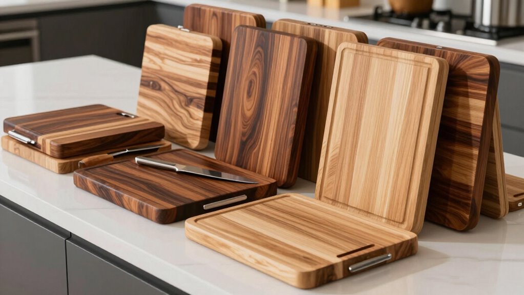 Choosing the right wooden cutting board is like finding a trusty steed for your kitchen adventures. With options from elegant acacia to sustainable bamboo, you’re equipped to slice and dice with confidence. Remember, a well-chosen board not only protects your knives but also elevates your culinary craft—making each meal prep feel like a master’s touch. So, pick your ideal board and let your kitchen’s story unfold with every chop and carve.